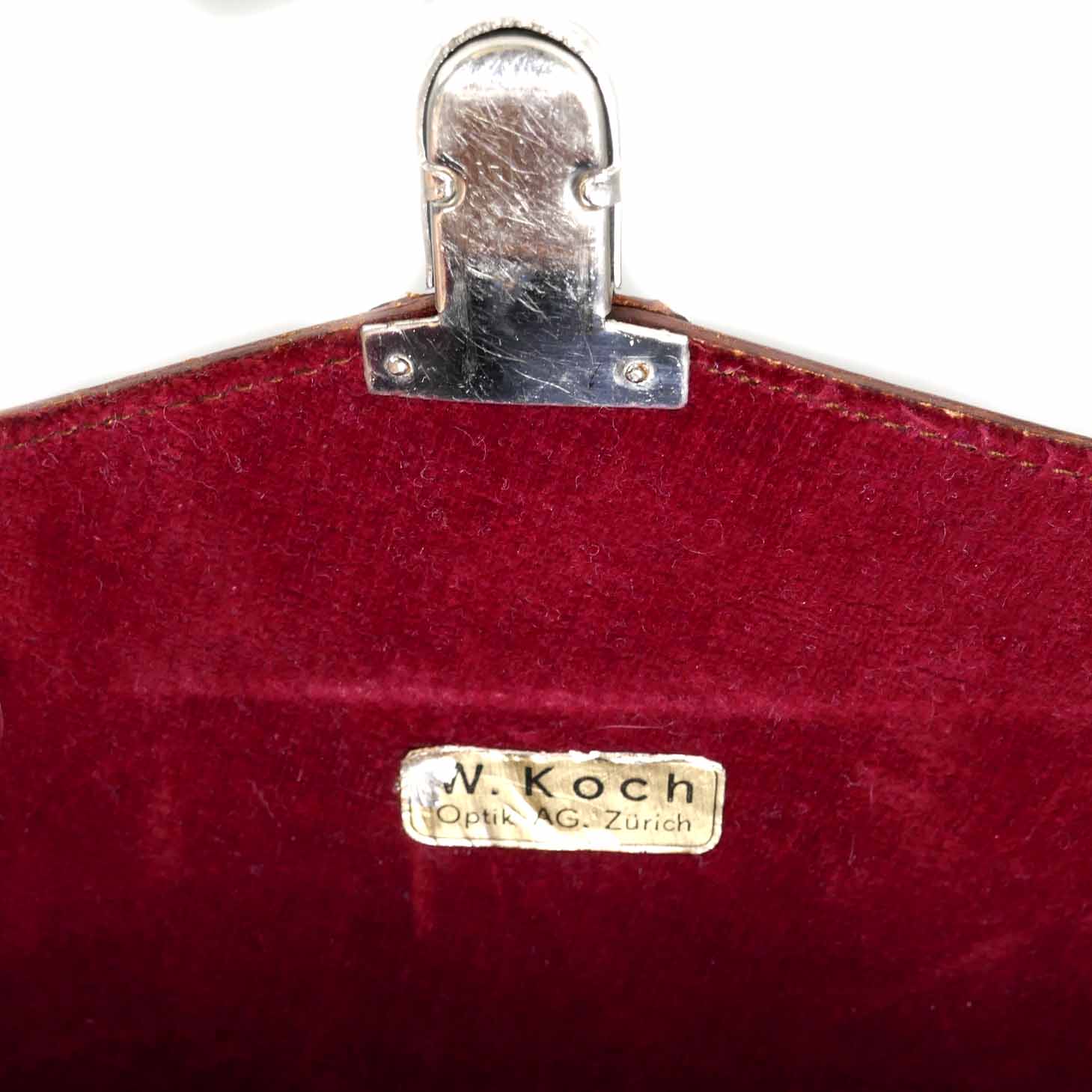 Dieses leichte Fernglas Sperber Wetzlar 8×30 befindet sich in sehr gutem Zustand. Es könnte von der Firma Hensoldt in Wetzlar hergestellt worden sein. Auf den Fotos sehen Sie ein ähnliches Fernglas in einer Werbebroschüre. Das Fernglas hat ein wenig Gebrauchsspuren. Die Linsen sind klar und weisen keine Beschädigungen oder Kratzer auf. Der Mechanismus zur Einstellung der Entfernung lässt sich leicht drehen. Das Bild ist scharf und kontrastreich. In der Leder Bereitschaftstasche ist ein Kleber des renomierten Optikers „W.Koch Optik AG Zürich“