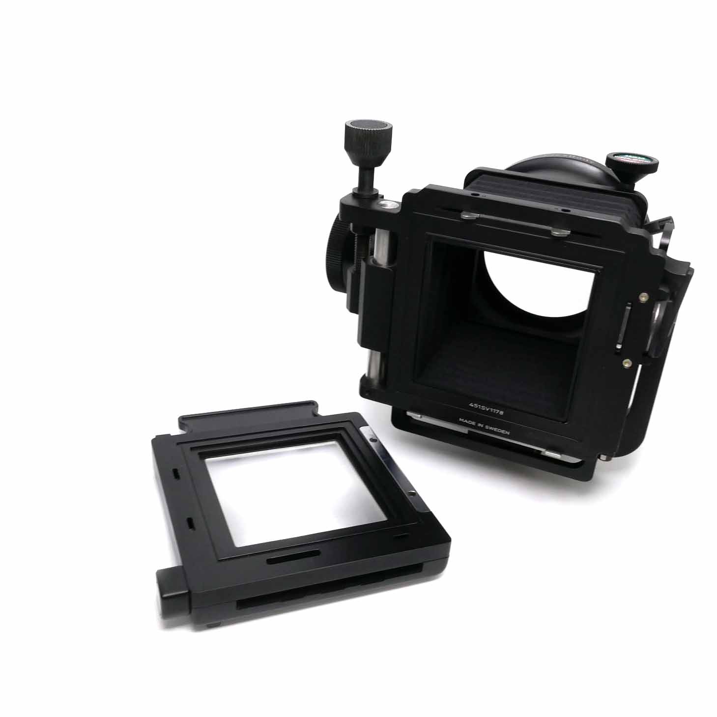 Dieses Hasselblad Flexbody CP (72109) mit der Seriennummer 451SV1178 befindet sich in einem ausgezeichneten Zustand. Das angebotene Flexbody wurde 2001 hergestellt. Das Flexbody ist eine kleine Fachkamera mit vielen Verstellmöglichkeiten. Die Kamera wird mit umfangreichem Zubehör geliefert. Zusätzlich zum Standardzubehör erhalten Sie auch den Hasselblad starrer Lichtschachtsucher (42013). Die Verstellmechanik funktioniert sehr geschmeidig. Der Balgen ist wie neu. Keine Gebrauchsspuren am Gehäuse und der Statiplatte. Die Mattscheibe ist ohne Reinigungsspuren. Sie können das Flexbody auch mit CFV-Digitalbacks verwenden.