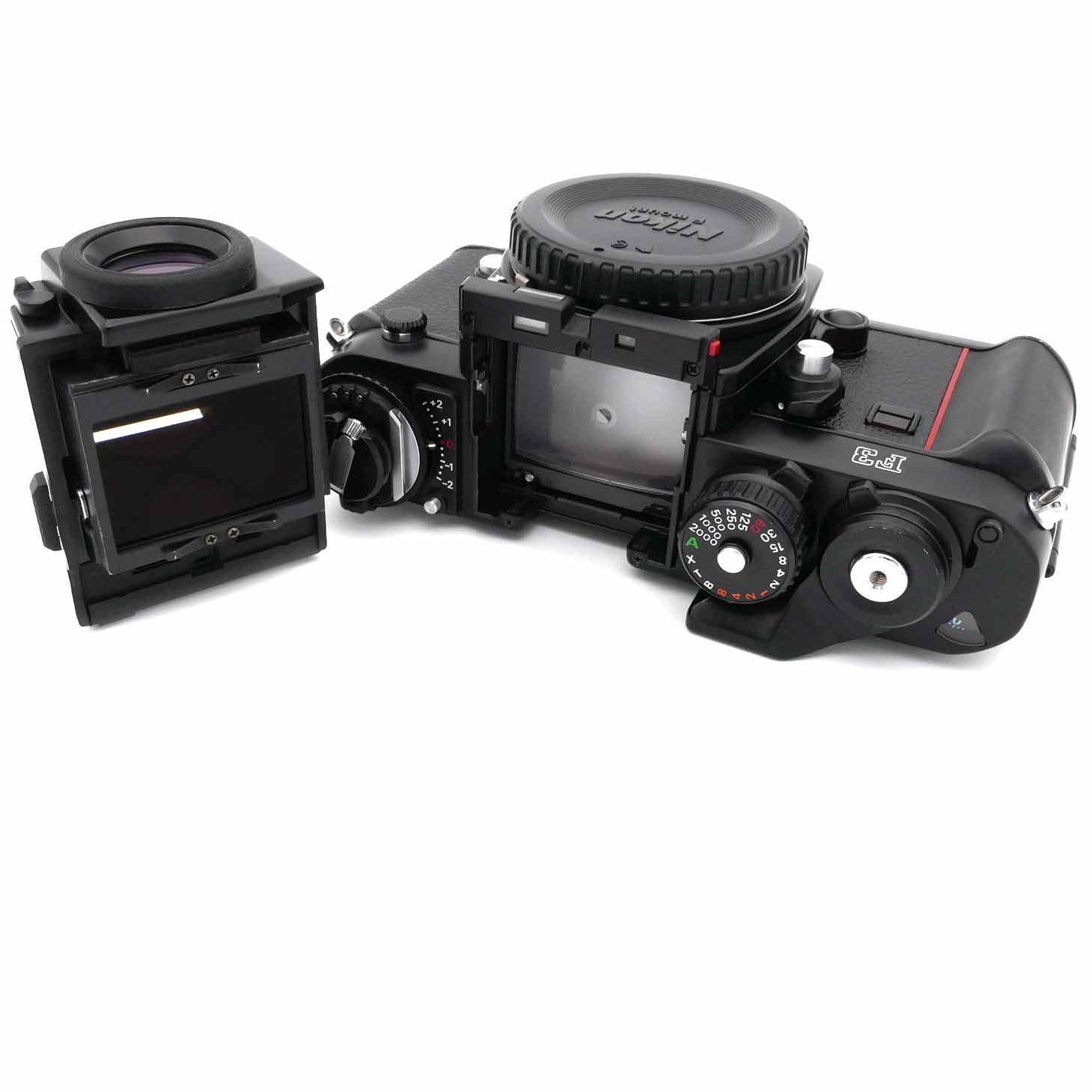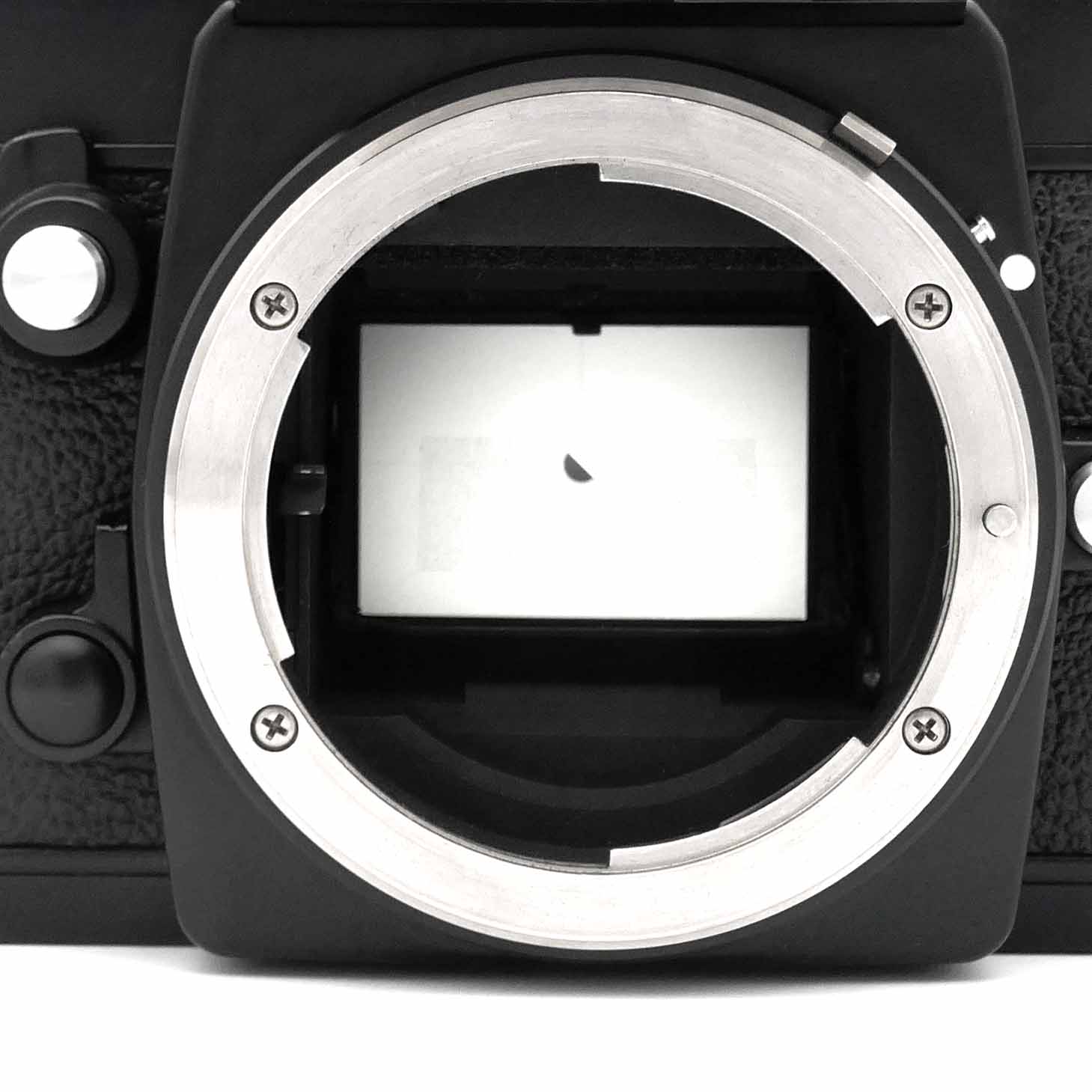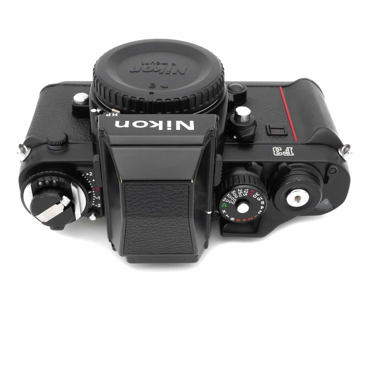 Die Nikon F3 HP (No.1806428) ist in einem sehr guten Zustand. Dieses Exemplar wurde im Juni 1987 gefertigt. Die leidigen Druckstellen auf den Nikon HP Prismas sind hier nicht vorhanden. Auf dem Gehäuse sieht man nur wenig Abrieb. Die Verschlusszeiten und der Belichtungsmesser stimmen nach der Revision genau. Der Spiegel und der Sucher sind sauber und ohne Kratzer. Die seltene P Mattscheibe ist ohne Reinigungsspuren. Die LED Anzeige ist kontrastreich. Auch das neutrale Sucherglas wird mitgeliefert. Die klebrigen Lichtdichtungen und die Spiegelbremse wurden ausgetauscht. Das Kamerabajonett hat nur wenig Abrieb und die Objektive verriegeln satt. Die Abblendtaste, der Selbstauslöser und der mechanische Hilfsauslöser funktionieren einwandfrei. Die ISO Einstellung, die Mehrfachbelichtung und der Knopf für die Beleuchtung des Belichtungsmesserfensters sind leichtgängig. Die Filmandruckplatte hat kein Abrieb. Mit Hilfe des HP-Suchers sehen auch Brillenträger das Sucherbild bis in die Ecken.