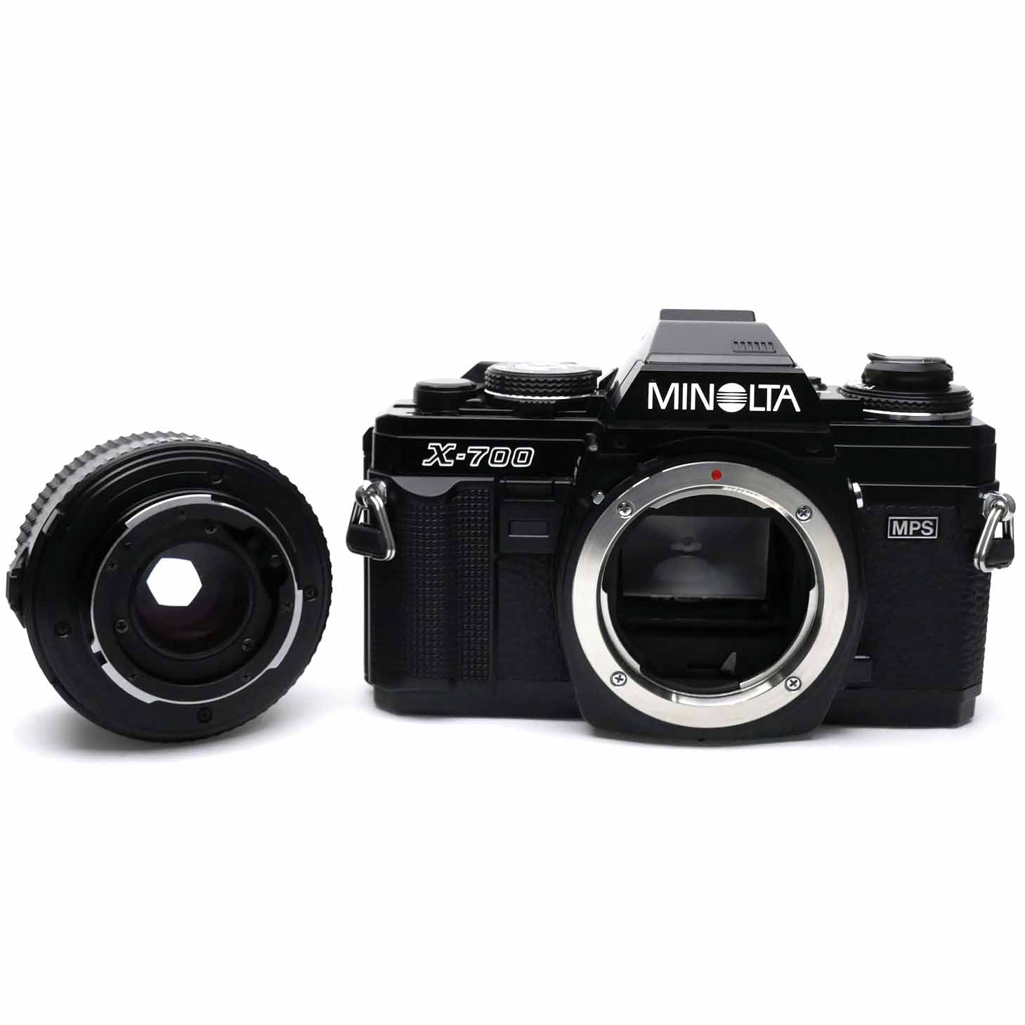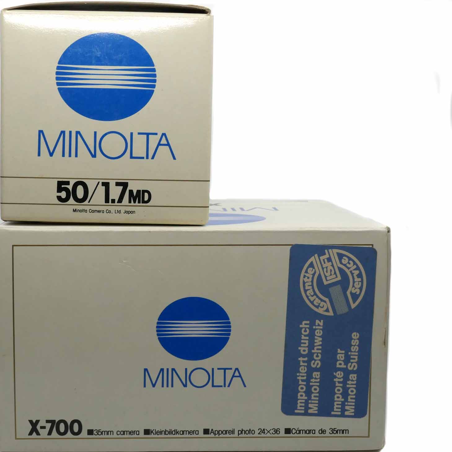 Die Minolta X-700 (No.2450869) und das Minolta MD 50mm / 1.7 (No.8365113) wurden im Dezember 2025 revidiert. Diese Minolta X-700 ist in „mint“ Zustand. Es gibt keine Gebrauchsspuren auf dem Gehäuse und dem Kamerabajonett. Auf der Bodenplatte ist sogar die Folie noch montiert. Alle Lichtdichtungen und der Spiegelstossdämpfer wurden ersetzt. Die Programm- und Zeitautomatik wie auch die manuelle Belichtungseinstellung funktionieren einwandfrei. Die Leuchtdioden im Sucher sind kontrastreich. Der Selbstauslöser und die Abblendtaste funktionieren perfekt.