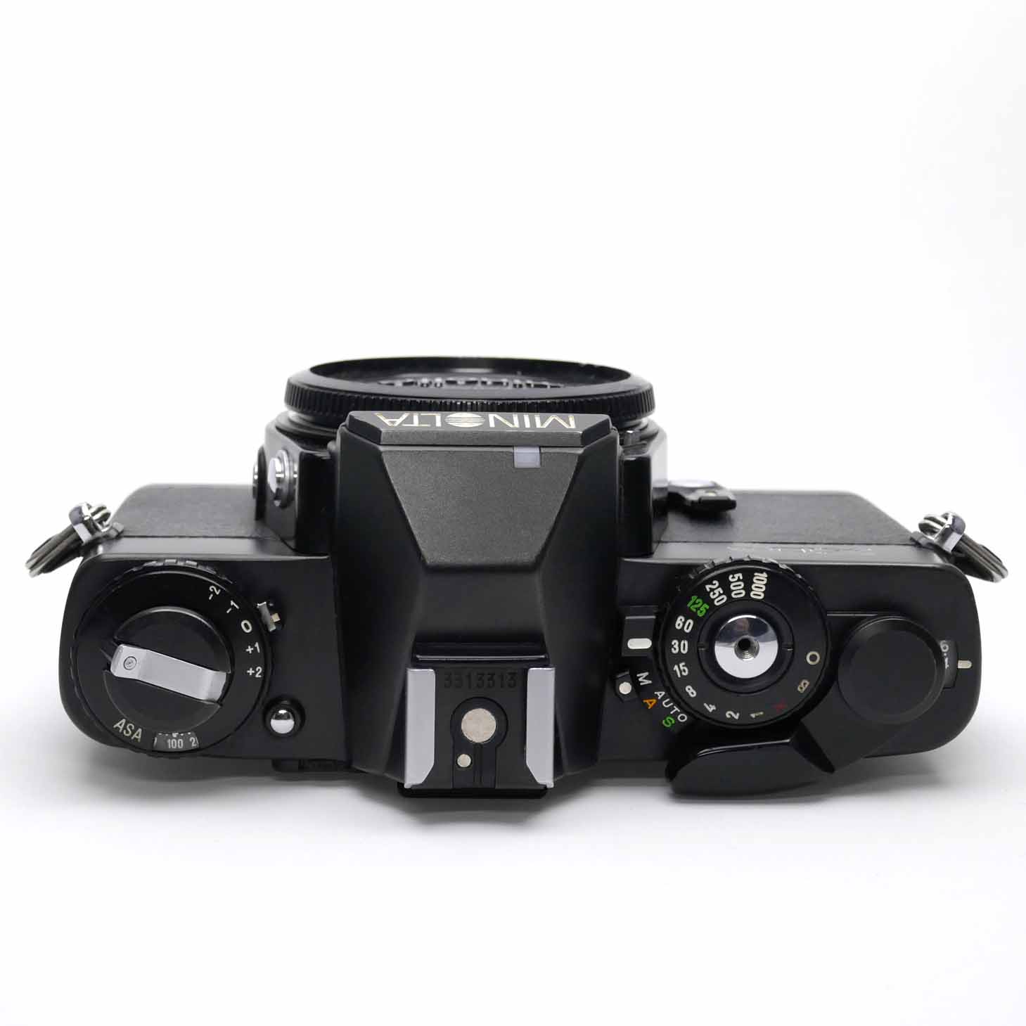 Diese Minolta XD-s mit der spannenden Gehäusenummer 3313313 ist in einem sehr guten Zustand. Das Metallgehäuse hat nur wenig Gebrauchsspuren. Die Kamera wurde im Oktober 2025 revidiert, alle Lichtdichtungen und der Spiegeldämpfer wurden ersetzt. Die Blenden- und Zeitautomatik wie auch die manuelle Belichtungseinstellung funktionieren einwandfrei. Die Filmandruckplatte und die Lamellen des Metallschlitzverschlusses sind ohne Abrieb. Die Leuchtdioden des Sucher mit Dioptrieneinstellung bieten einen hohen Kontrast. Der Selbstauslöser und die Abblendtaste funktionieren perfekt.