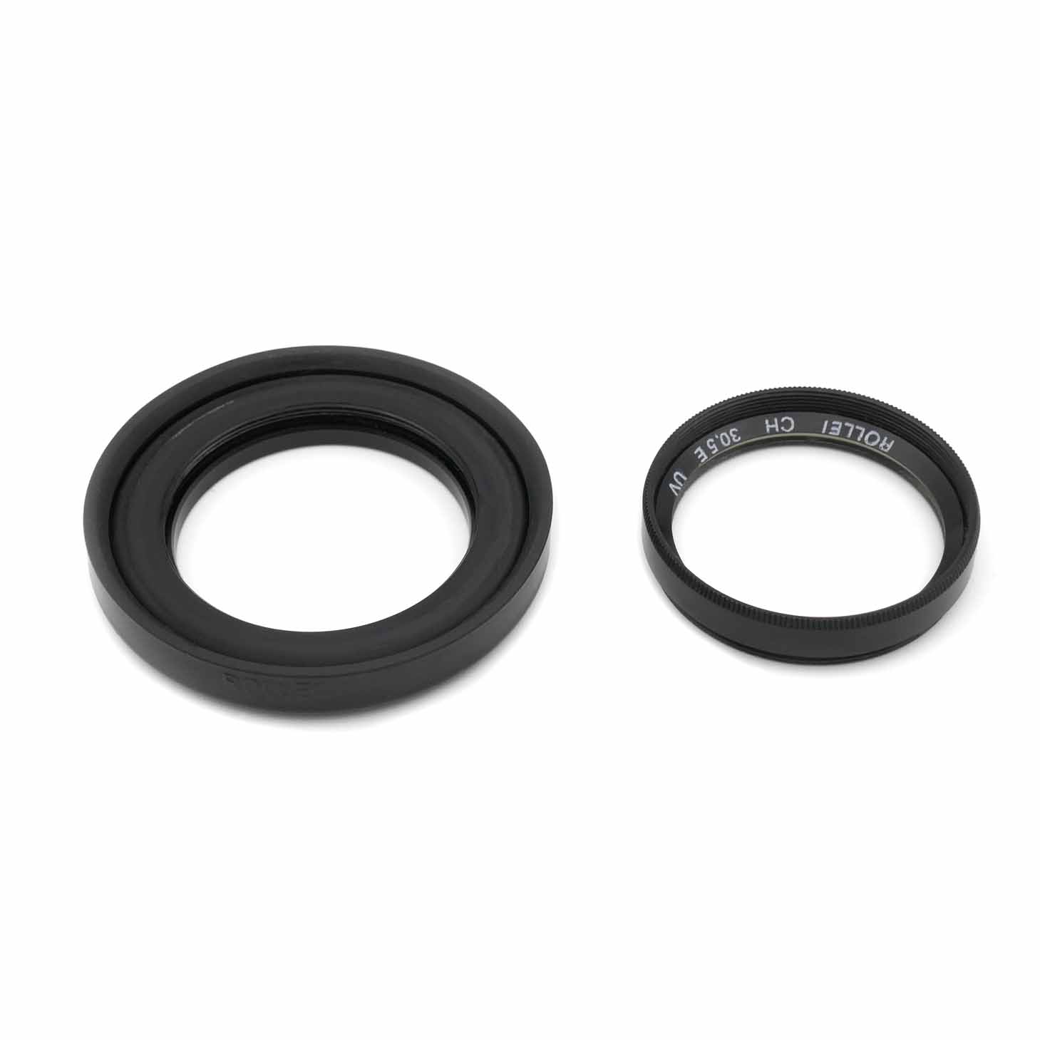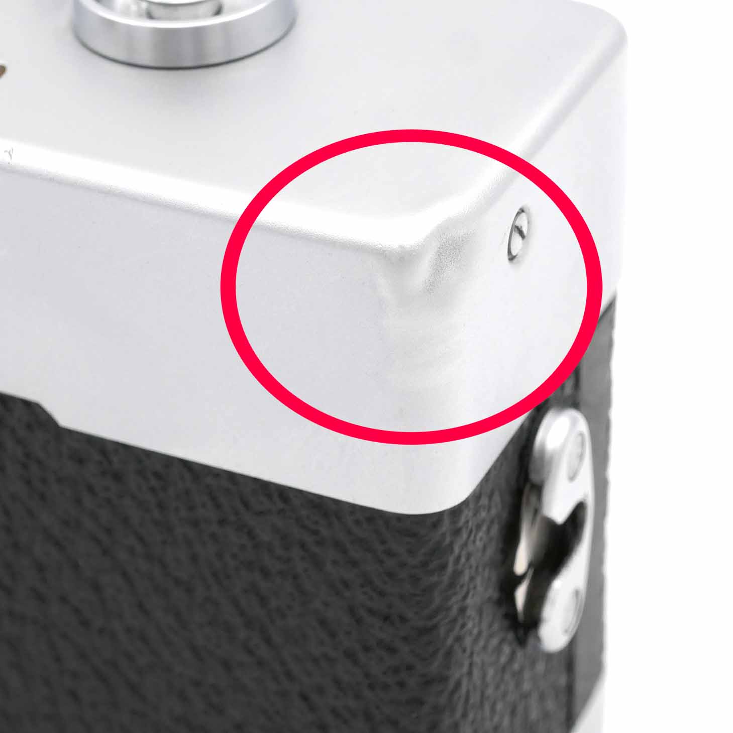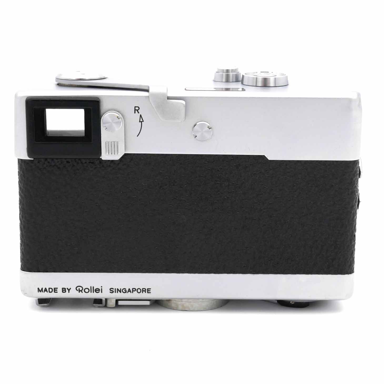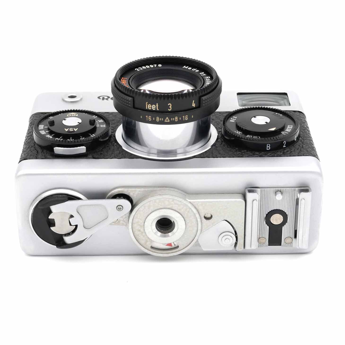 Diese Rollei 35S chrome wurde im März 2026 revidiert. Die Kamera ist in einem guten Zustand. Es hat ein paar Gebrauchsspuren, Druckstellen und Abrieb am Gehäuse. (Bilder) Die Rollei 35S Sucherkamera wurde von 1974 bis 1980 hergestellt. Das Rollei HFT Sonnar 2.8/40 mm (2289976) Objektiv ist klar und frei von Kratzer oder Vergütungsschäden. Die Blenden- und Verschlusslamellen sind ohne Fett. Der Belichtungsmesser stimmt nach der Revision und der Anpassung auf die 1.5 Volt Batterie genau. Der Scharfeinstellring und die Räder für die Verschlusszeit- und Blendeneinstellung drehen ohne Widerstand. Die Blendenlamellen zeigen keinen Abrieb. Der Sucher ist klar und die Bildbegrenzungslinien kontrastreich.