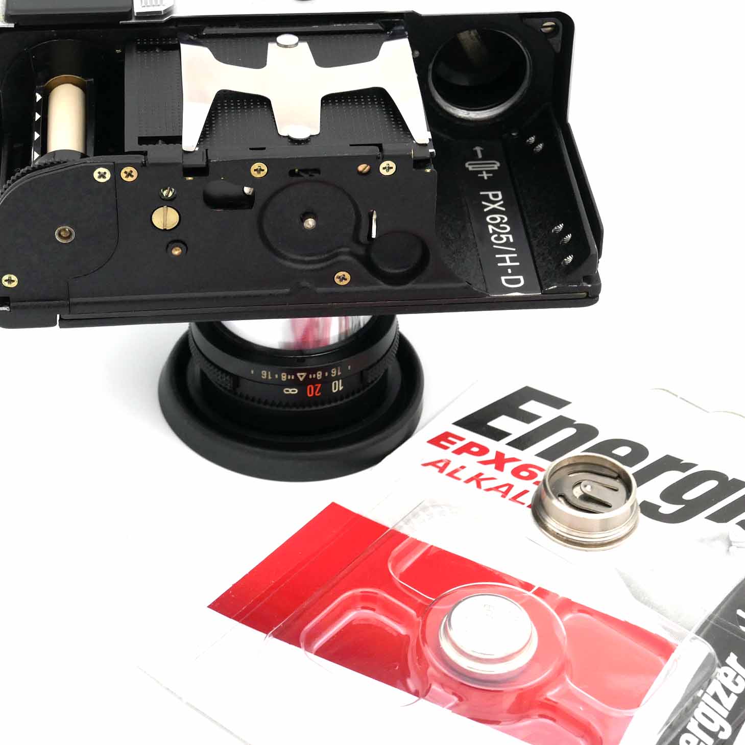 Da die PX 625 Quecksilberbatterie nicht mehr hergestellt wird wurde der Belichtungsmesser anlässlich der Revision so justiert, dass die EPX-625 G Batterie mit 1.5 Volt verwendet werden kann.