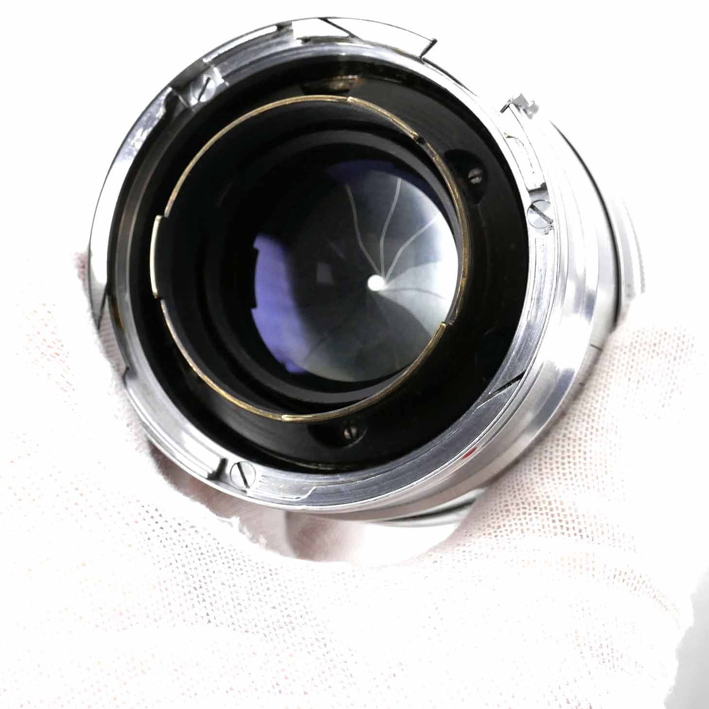 Dieses Zeiss Opton Sonnar 85 mm/ 2 (Nr.1056077) ist in einem sehr guten Zustand! Nach der Revision sind die Linsen klar und ohne Kratzer. Der Schärfering dreht fein. Die verfetteten Blendenlamellen wurden gereingt. Der Objektivtubus und das Bajonett weisen nur wenig Gebrauchsspuren auf. Der Entfernungsmesser der Contax IIa funktioniert einwandfrei. Das Contax-Gehäuse ist nicht im Lieferumfang enthalten; die Kamera dient nur zu Demonstrationszwecken.