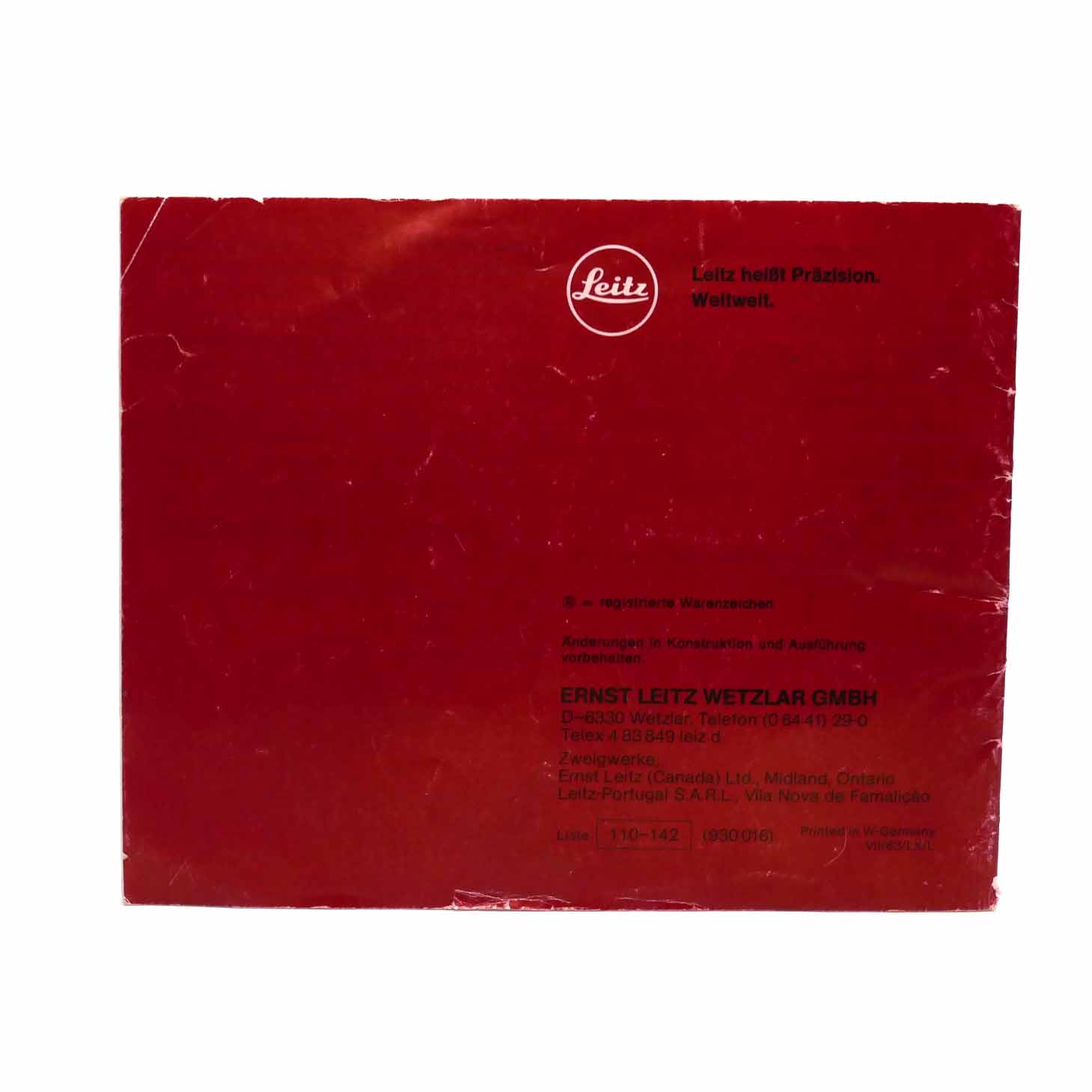 Die Leica M4-P Gebrauchsanleitung in deutscher Sprache ist einem guten Zustand. Es hat einige Gebrauchsspuren auf dem Umschlag. Die 31 Seiten sind komplett und ohne Notizen oder Markierungen.