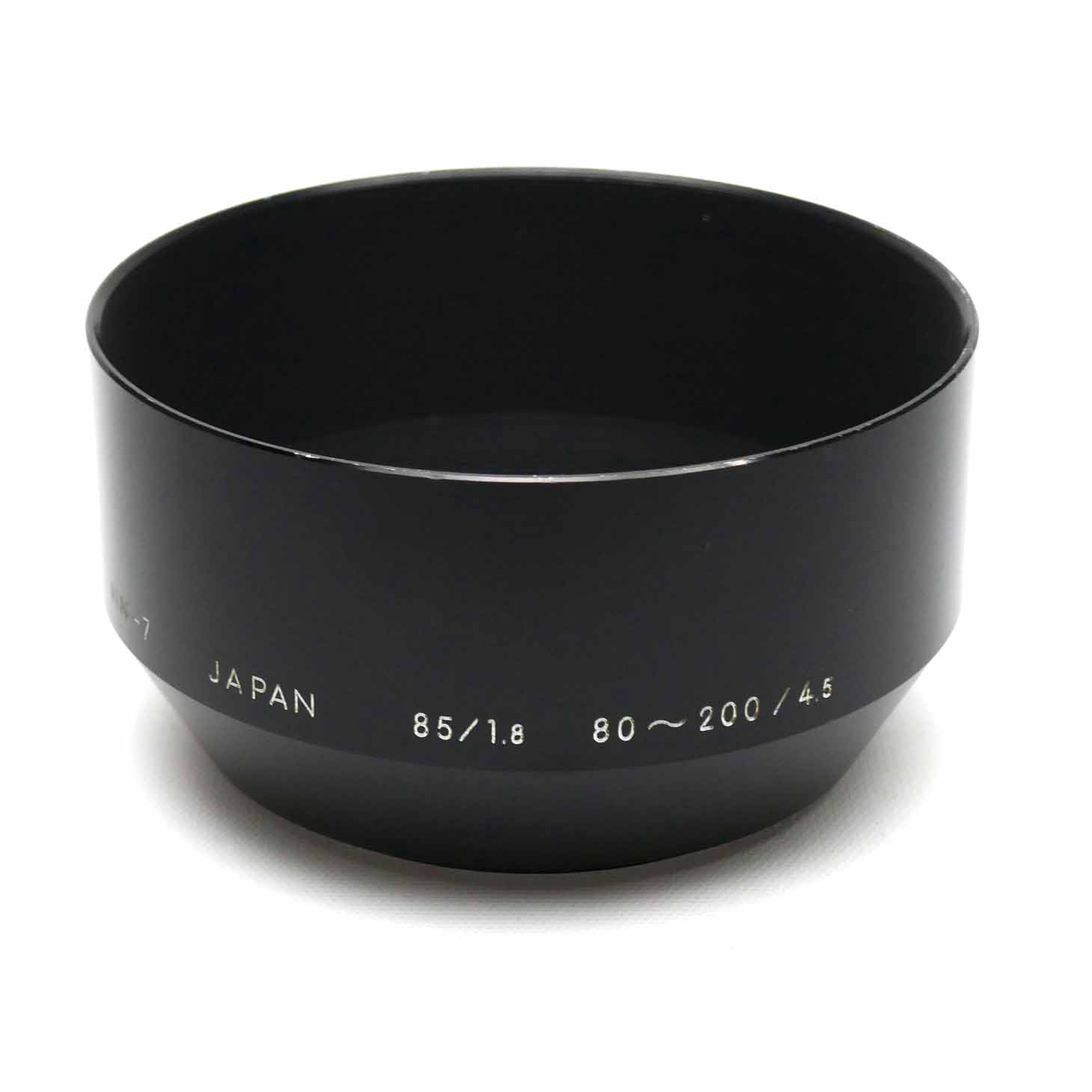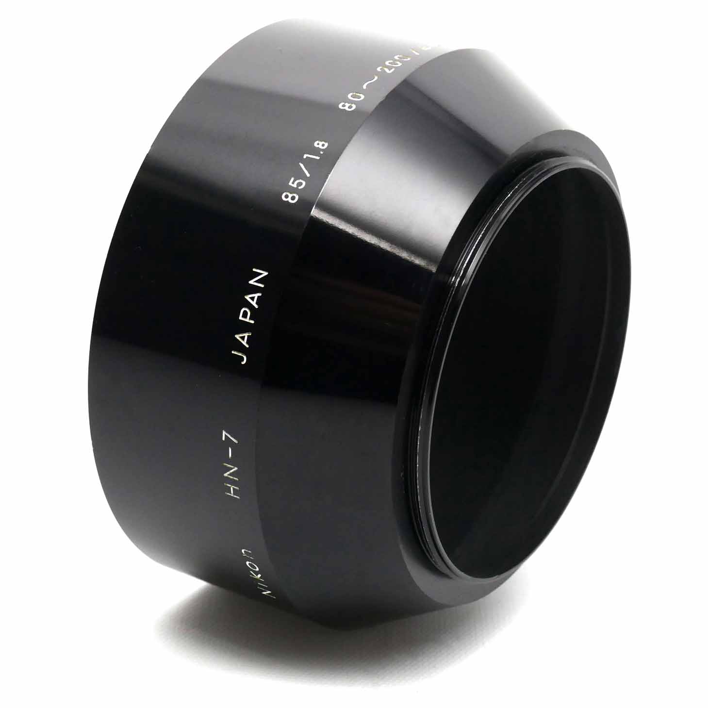 Die Nikon Original Metall Gegenlichtblende HN-7 passt auf alle Objektive mit einem Durchmesser von 52 mm und einer Brennweite von 80 mm oder mehr. Die Gravur auf der Gegenlichtblende weist auch auf eine Kompatibilität mit dem Nikon 85/1.8 und einem 80-200/4.5 hin. Die angebotene HN-7 Gegenlichtblende ist in einem sehr schönen Zustand. Es hat keine Dellen im Tubus und dem Schraubgewinde.