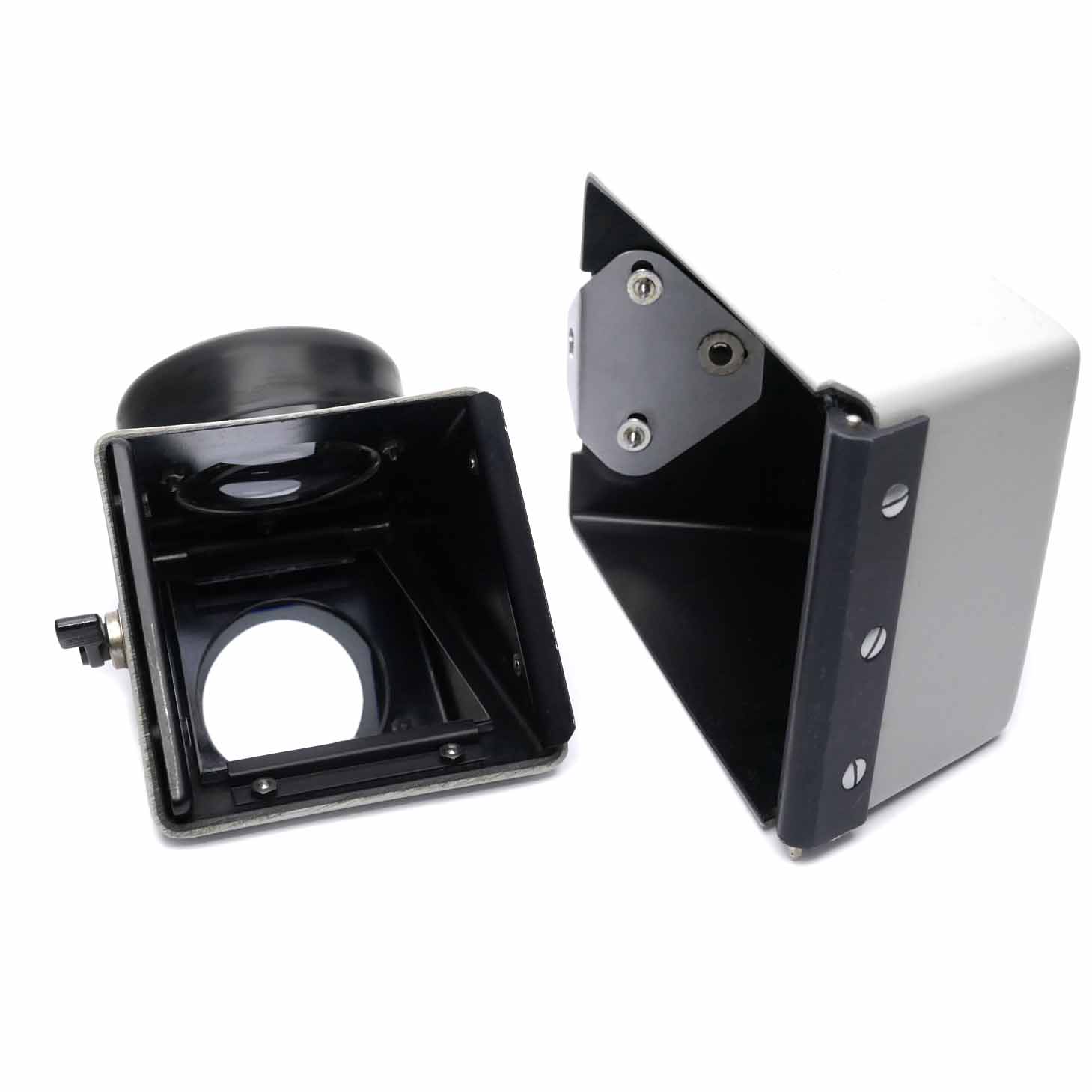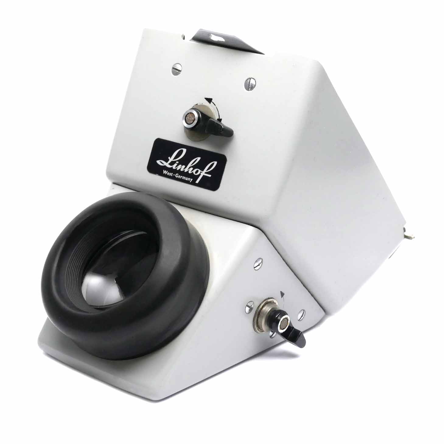 Der Winkelspiegel gestattet die Betrachtung eines aufrechten Mattscheibenbildes. Dieser Winkelspiegel ist für alle Linhof 9×12 Rückteile geeignet und auf Hoch- und Querformat unsteckbar. Für den Transport zerlegbar.