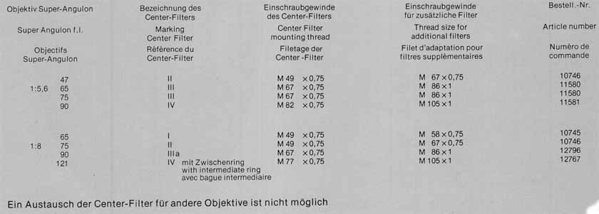 Ein Austausch der Center Filter für Objektive anderer Brennweiten ist nicht möglich.
